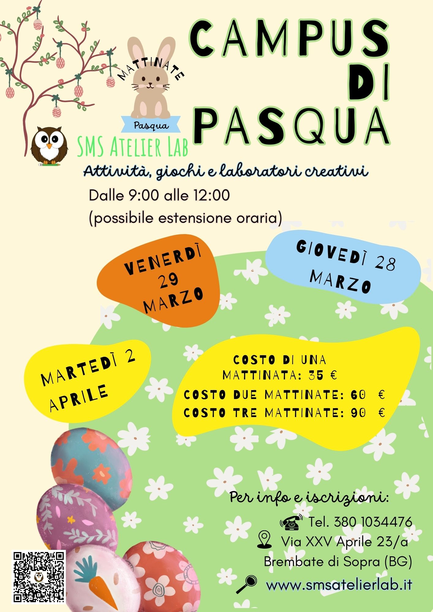 Quest'anno SMS Atelier Lab propone per le vacanze di Pasqua Easter Campus. Mattinate da trascorrere insieme divertondosi con laboratori creativi, attività e giochi