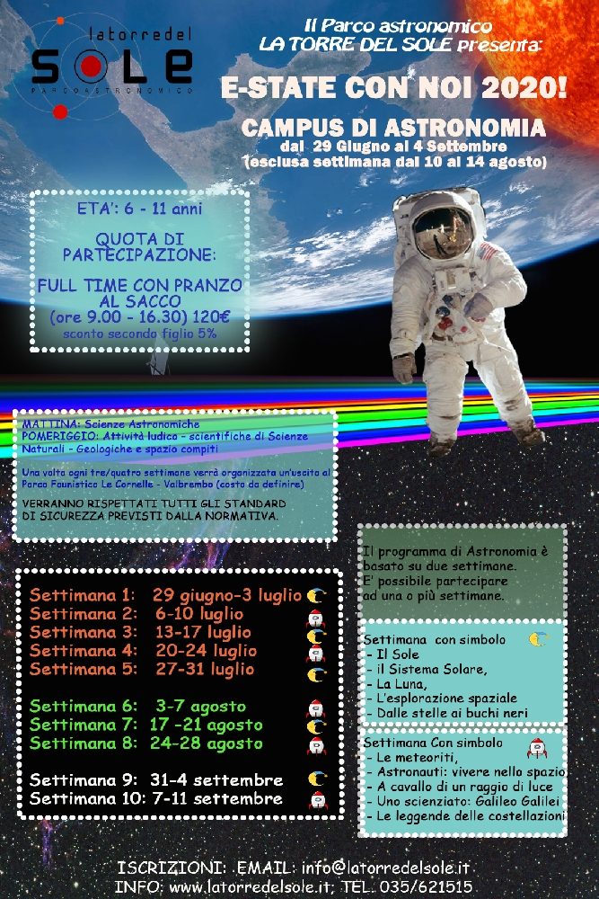 La Torre del Sole propone: E-STATE CON NOI, Campus di Astronomia per ragazzi dai 6 agli 11 anni.