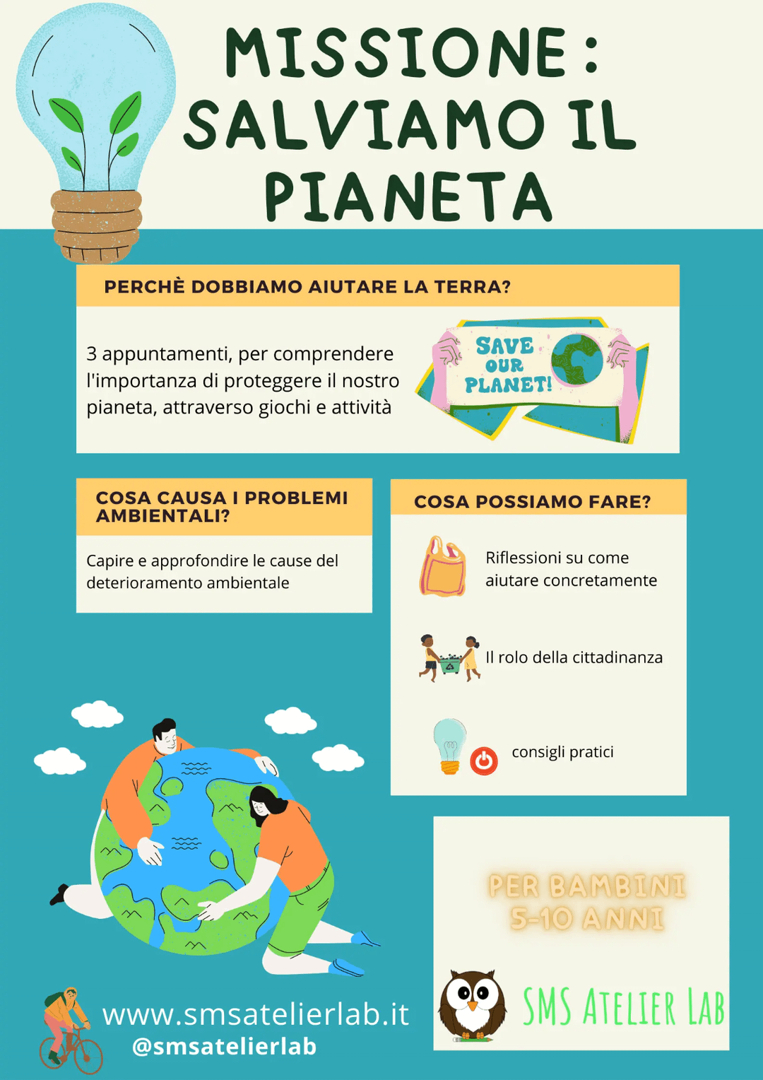 Tre appuntamenti, per comprendere l'importanza di proteggere il nostro pianeta. Attraverso piccoli giochi e attivitร creative, verrร stimolata la riflessione sulle problematiche ambientali e sul ruolo della cittadinanza attiva.