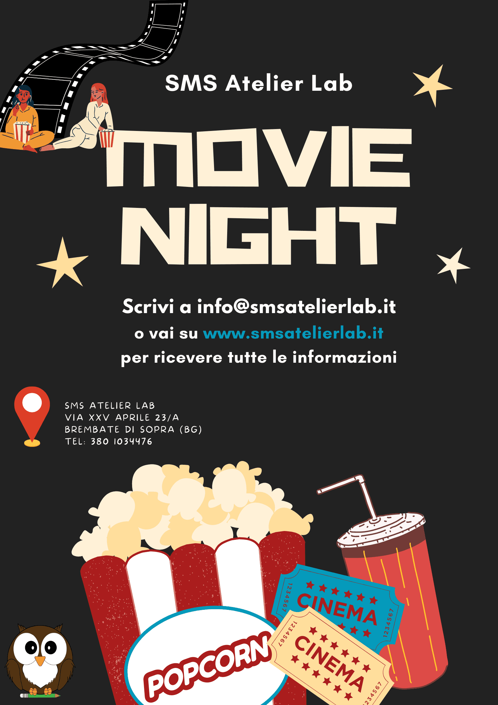 SMS Atelier Lab organizza "Movie Night": un film selezionato, relax come a casa e pop corn per un sabato sera diverso dal solito.