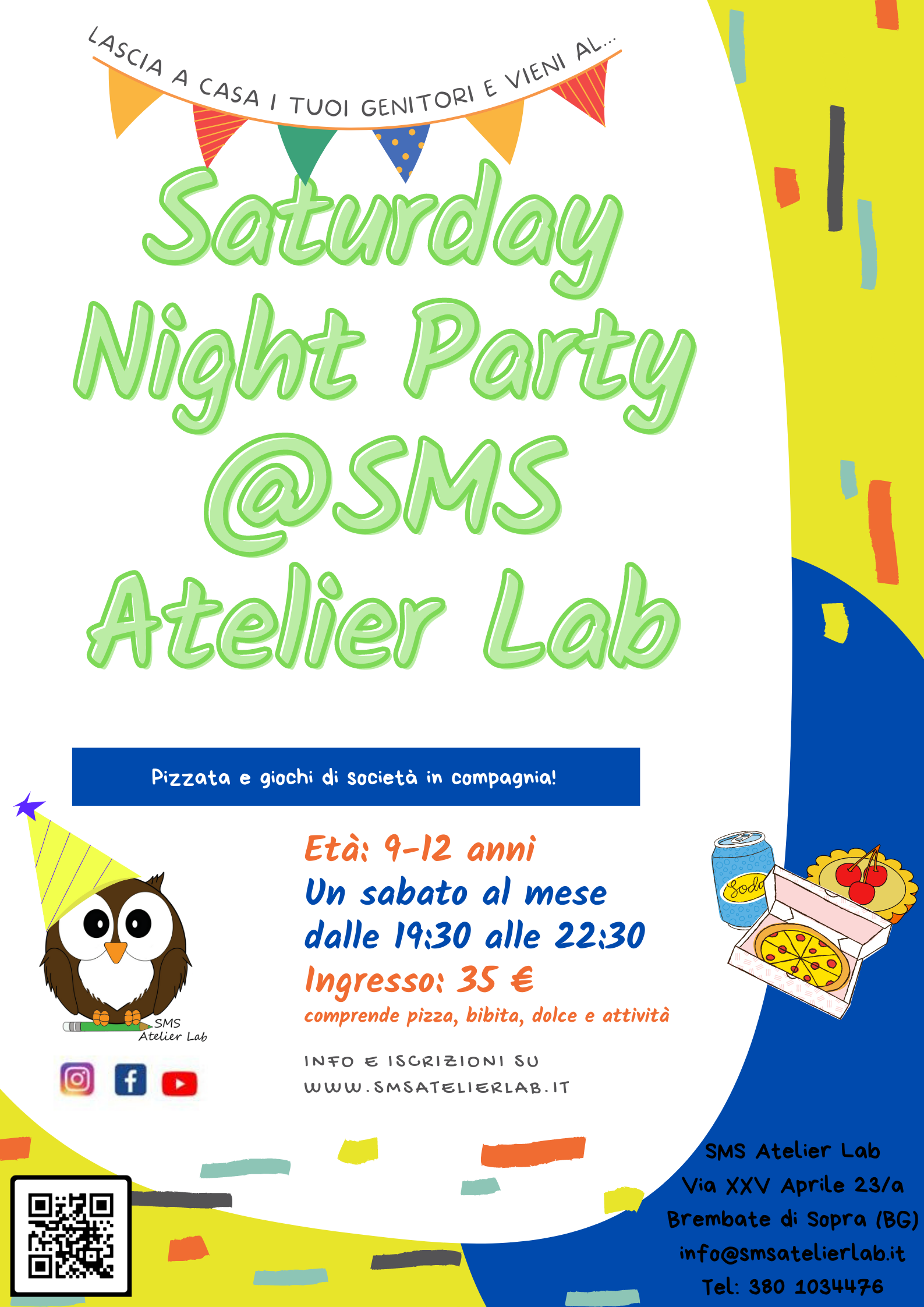 Lascia a casa i tuoi genitori e vieni a trascorrere il sabato sera con noi! SMS Atelier Lab ti propone una pizzata in compagnia e a seguire un gioco di società!