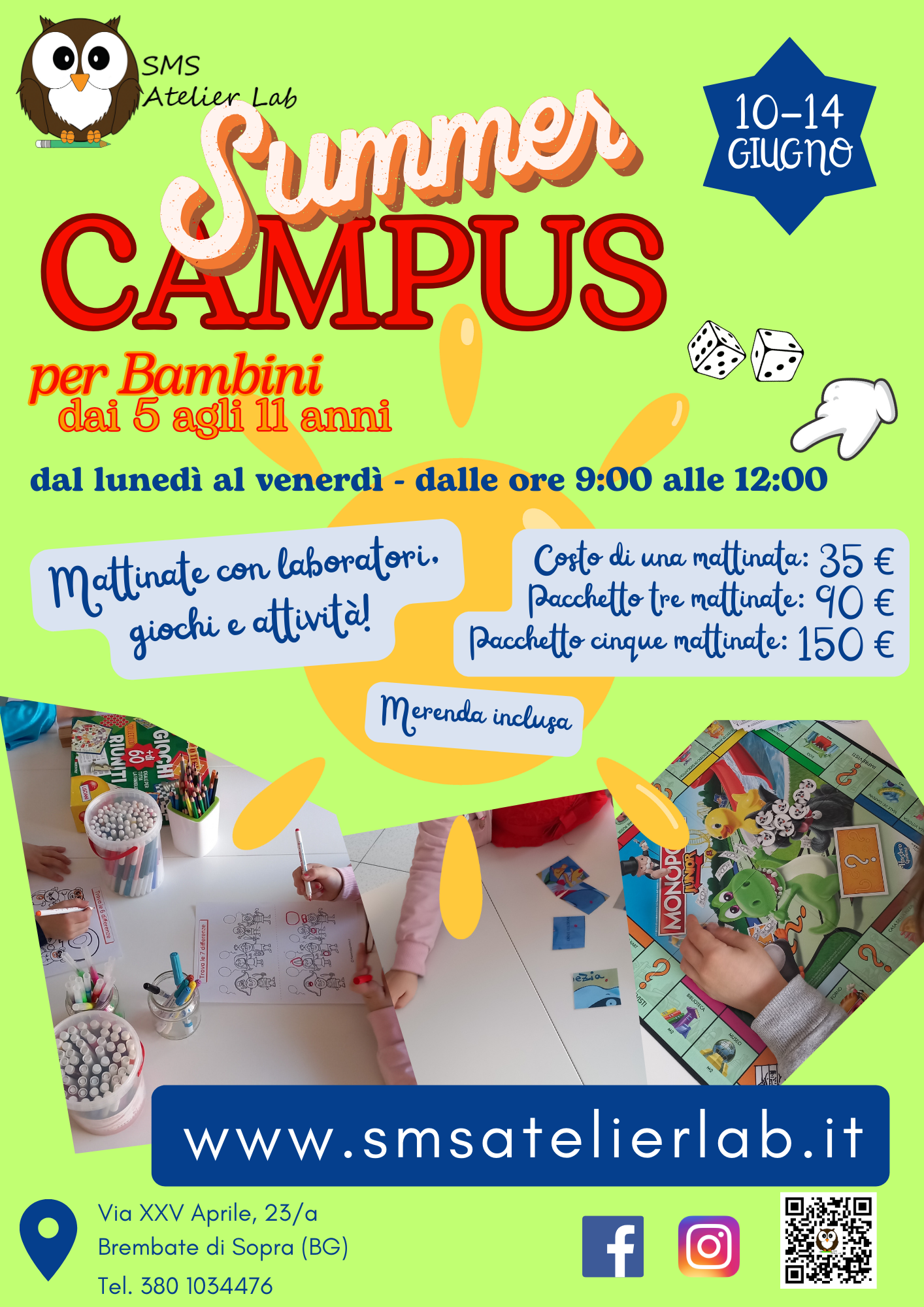 Novità in arrivo per l'estate 2024! SMS Atelier Lab propone per le vacanze estive Summer Campus. Mattinate da trascorrere insieme divertendosi con laboratori creativi, attività e giochi.