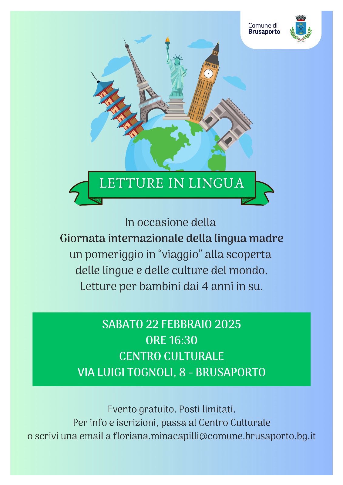 In occasione della Giornata internazionale della lingua madre, il Comune di Brusaporto propone l’iniziativa “Letture in lingua” per scoprire le lingue e le culture del mondo.