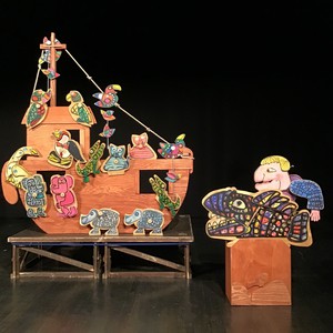 Una scenografia - pensata e realizzata da Lando Francini - è predisposta per essere montata a vista: compone un quadro con le immagini degli animali posate sopra ad una bellissima barca-casa tutta di legno, che accompagna passo passo i piccoli spettatori nell’ascolto di tanta musica e tante canzoni…