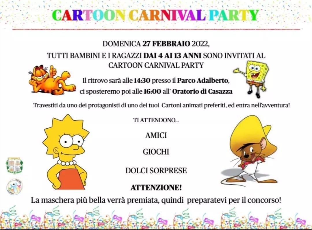 Da non perdere a Casazza il "Cartoon carnival festival" che vedrà eleggere la mascherina più bella!