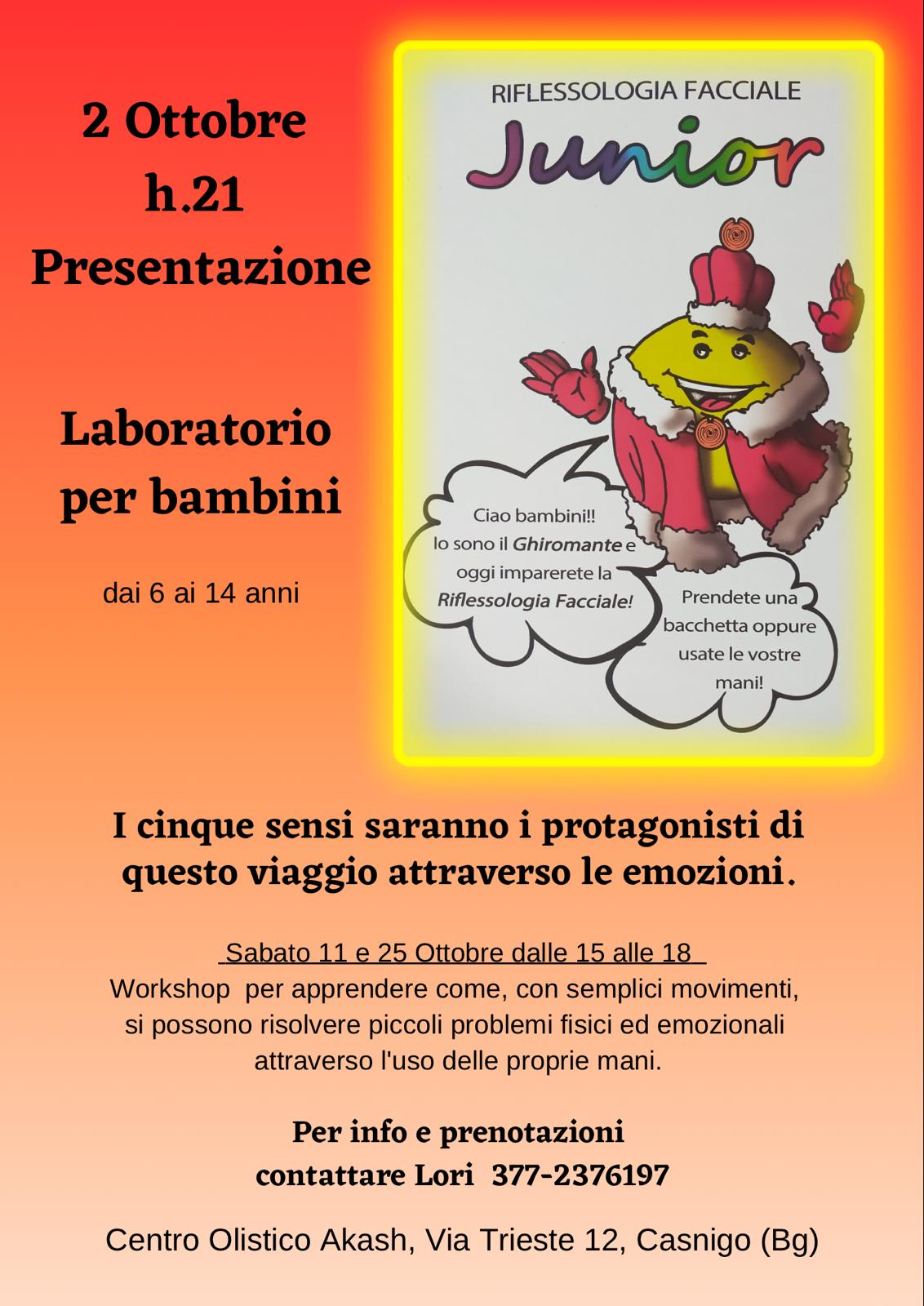 Laboratorio per bambini dai 6 ai 14 anni: un viaggio speciale attraverso le emozioni, per imparare semplici tecniche di riflessologia facciale.