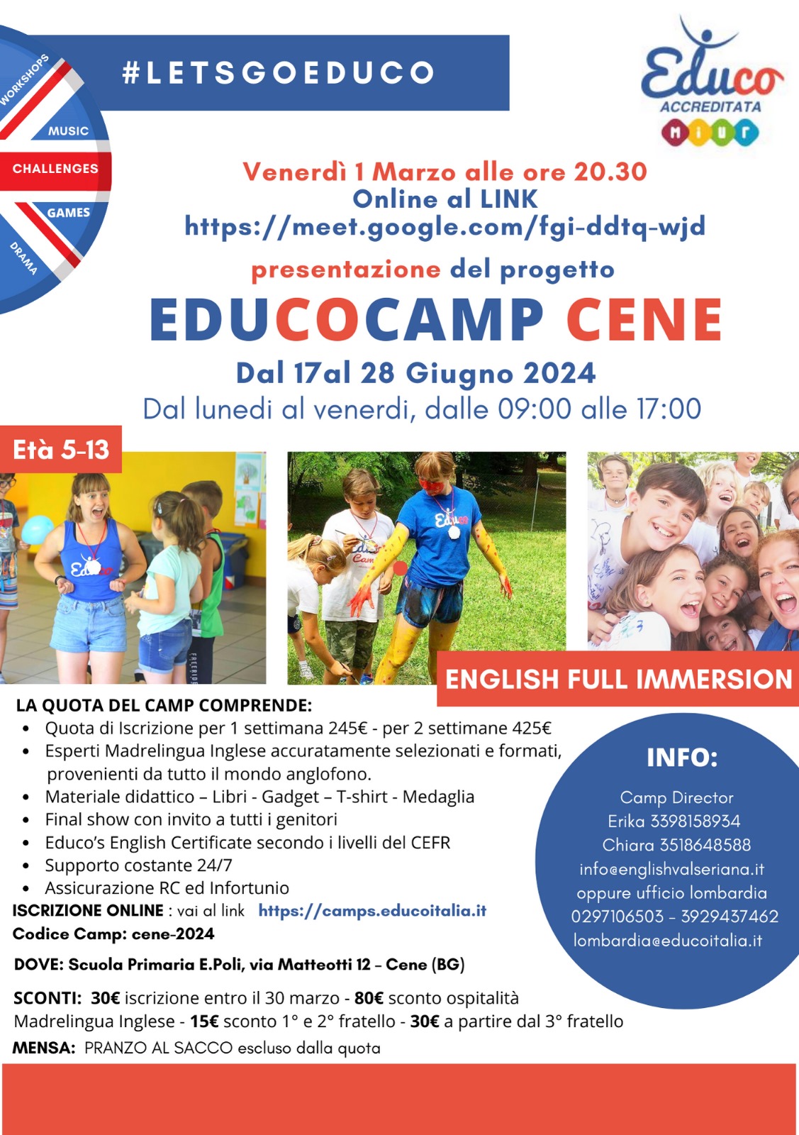 A Cene un'occasione per poter far apprendere l'inglese ai propri figli: si tratta di una vera e propria full immersion nella lingua con un camp estivo per i bambini dai 5 ai 13 anni.