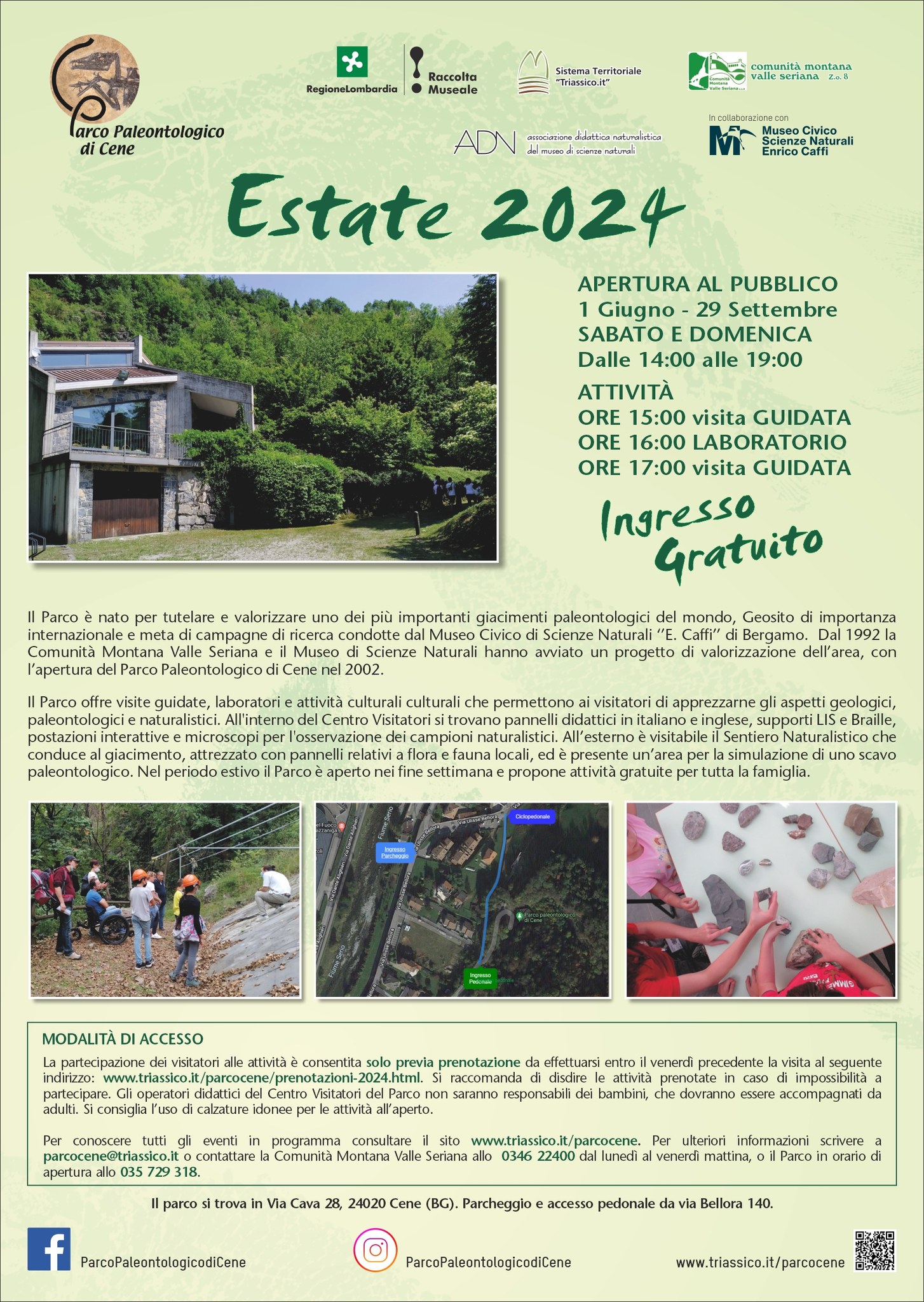 Il Parco infatti comprende un centro visitatori con pannelli che descrivono la storia geologica e paleontologica dellโarea, importante giacimento fossilifero conosciuto a livello internazionale, da cui provengono i reperti fossili custoditi al Museo Civico di Scienze Naturali di Bergamo.