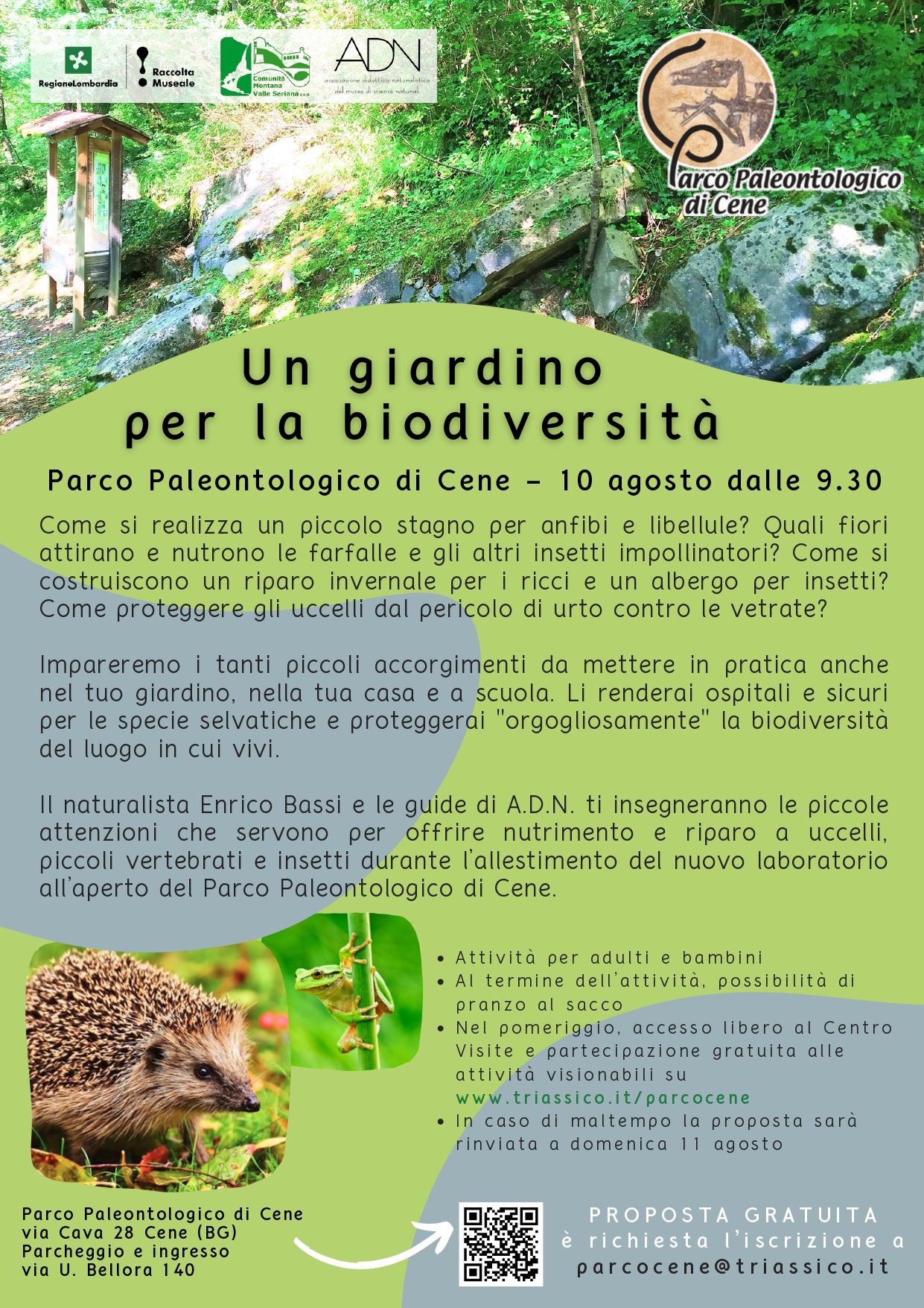 Sabato 10 agosto, dalle ore 9:30, il Parco Paleontologico di Cene organizza una giornata di attività per adulti e bambini, dedicata alla biodiversità insieme al naturalista Enrico Bassi e le guide di A.D.N.