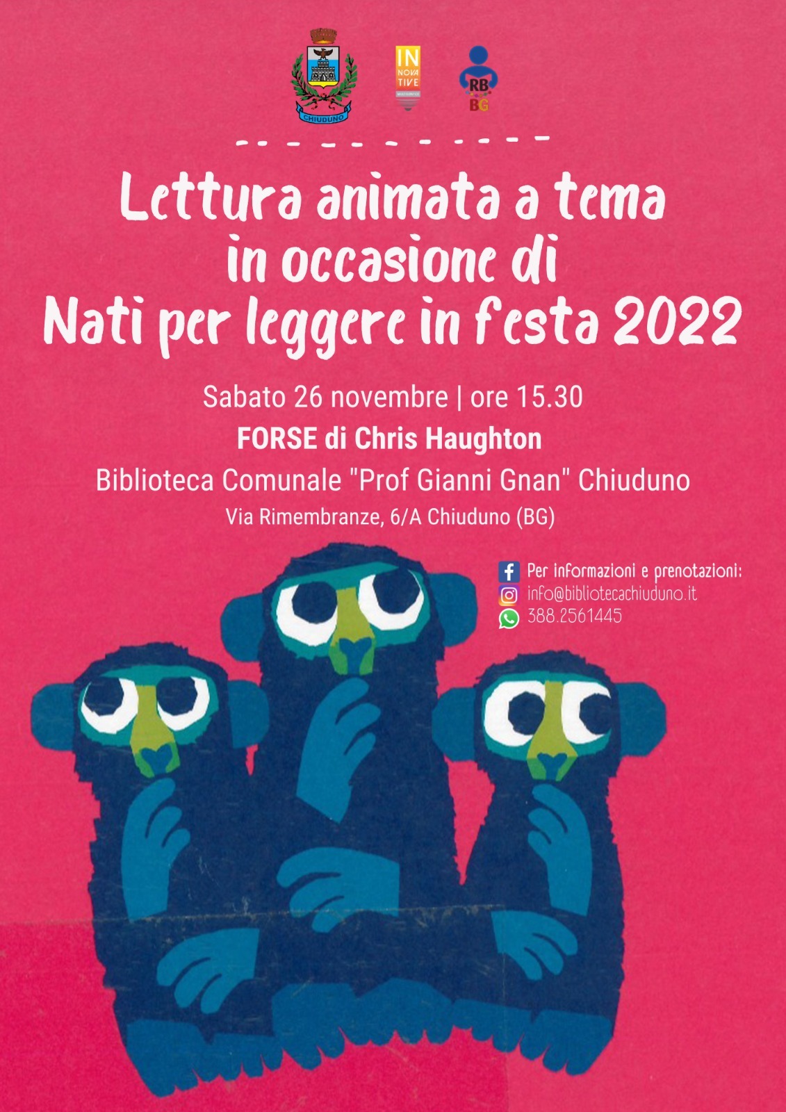 La biblioteca, in occasione dell'evento Nati per Leggere "Animaletti: storie divertenti di cuccioli sorprendenti" organizza la lettura con laboratorio a tema del libro di Chris Haughton.