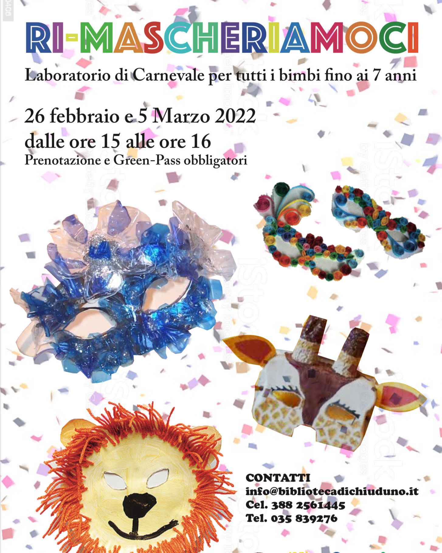 Per festeggiare il Carnevale, la Biblioteca di Chiuduno propone anche per sabato 5 marzo laboratori creativi rivolti a tutti i bimbi fino ai 7 anni!