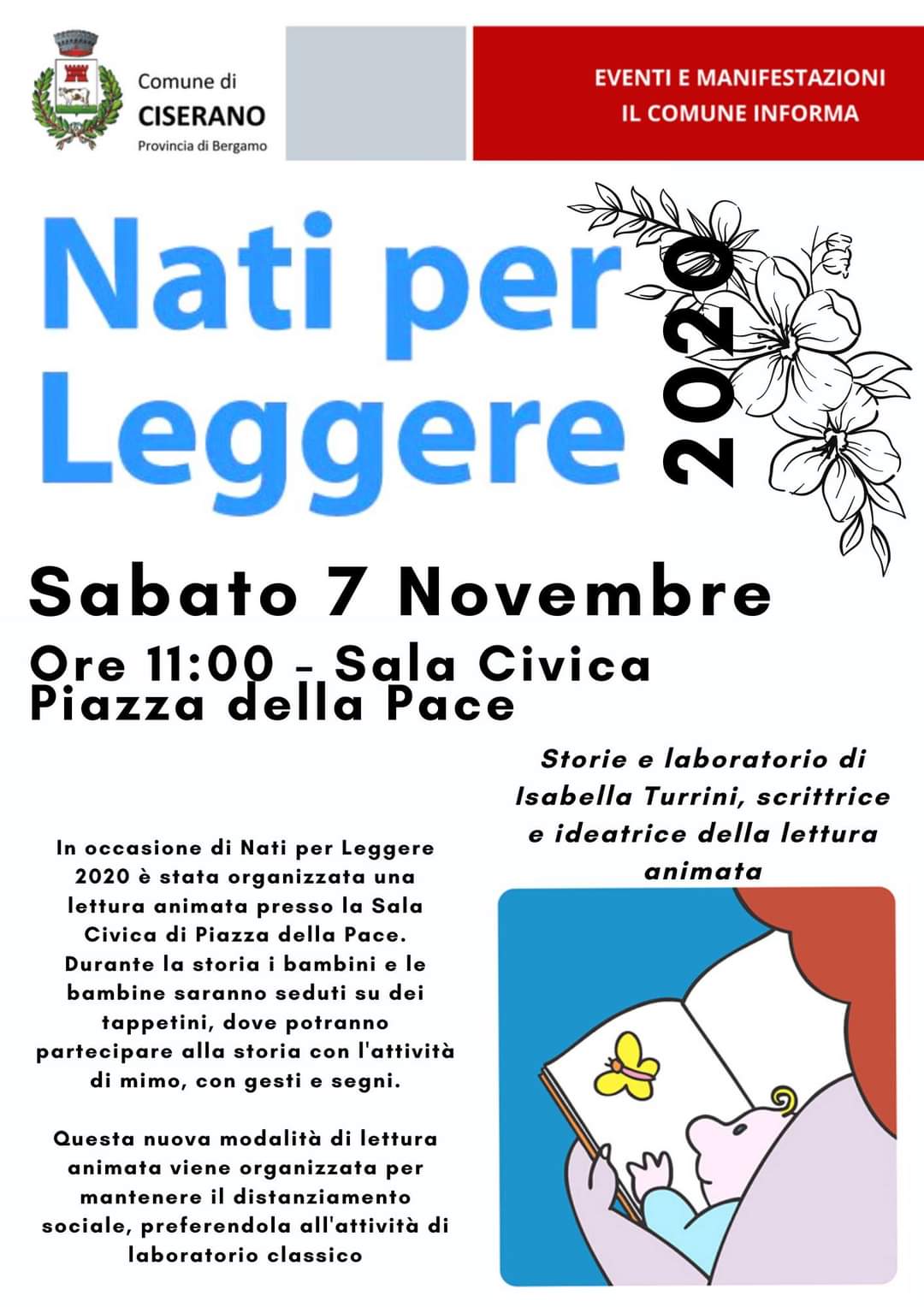 In occasione di Nati per Leggere 2020 è stata organizzata una lettura animata presso la Sala Civica di Piazza della Pace.