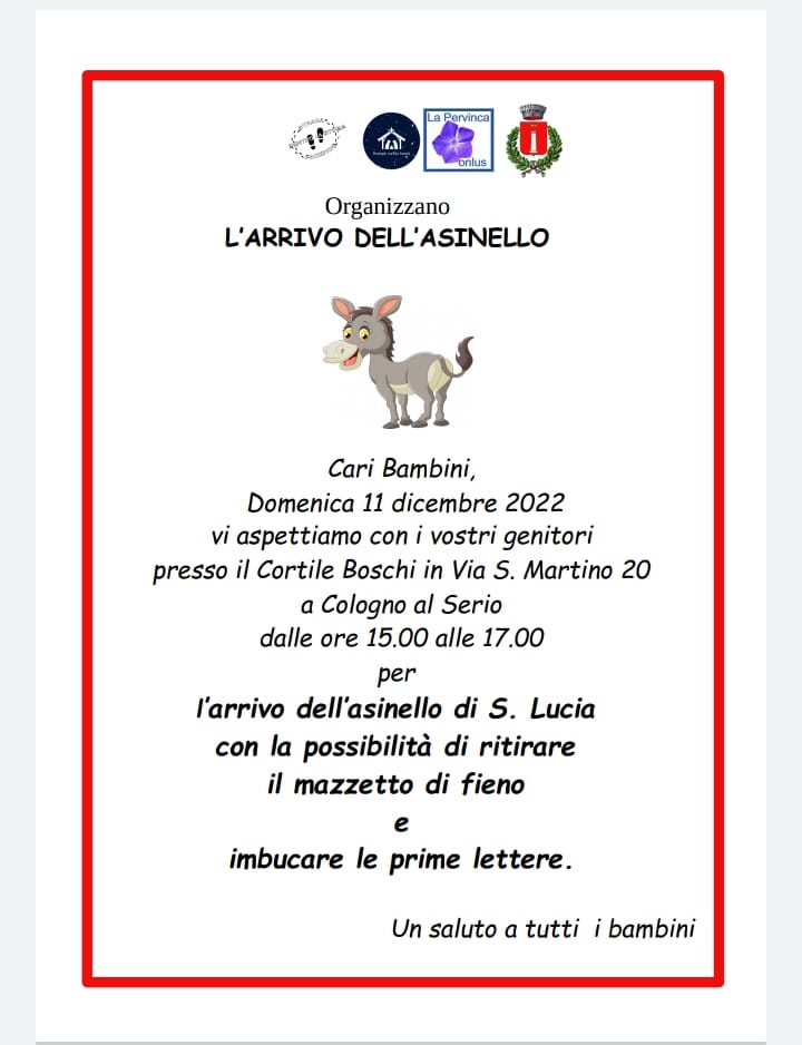 Arriva l'asinello di Santa Lucia con la possibilità di ritirare il mazzetto di fieno e imbucare le prime lettere.