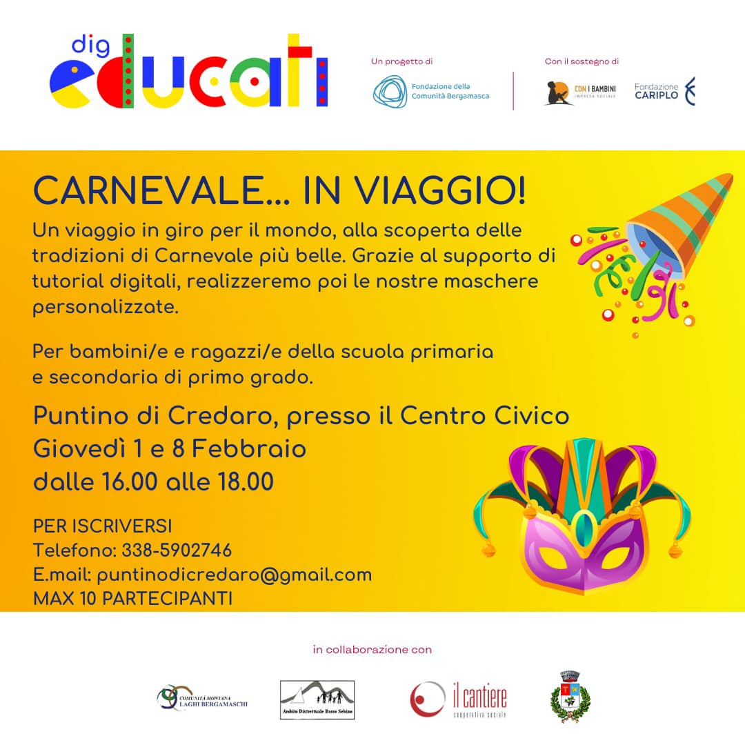 Giovedรฌ 8 febbraio si terrร lโevento โCarnevale...in viaggio!โ, presso il Puntino allโinterno del Centro Civico di Credaro.
