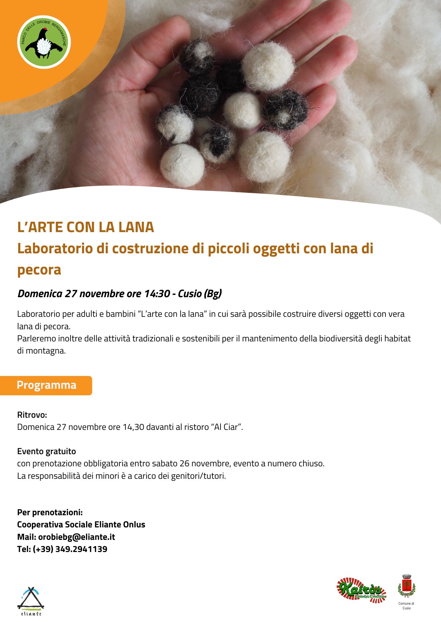 "Parco Vivo" è organizzato dal Parco delle Orobie Bergamasche con il supporto tecnico di Cooperativa Eliante.