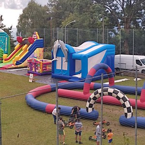 Allegra giornata con gonfiabili per bambini presso il parco giochi di Fuipiano Valle Imagna.