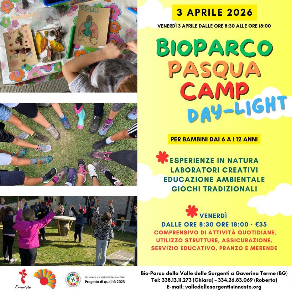Presso il Bioparco della Valle delle Sorgenti di Gaverina Terme, esperienze in natura, laboratori creativi, educazione ambientale, giochi tradizionali e tanto tanto divertimento!