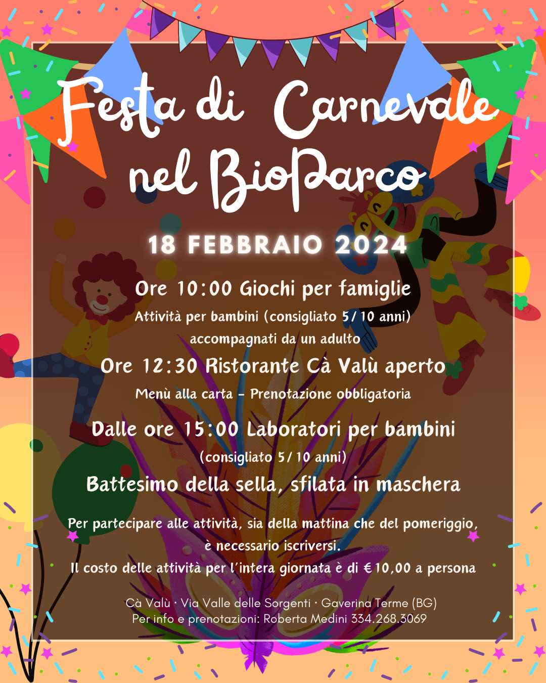 Per celebrare il Carnevale, al BioParco viene organizzata una grande giornata di festa, per stare insieme e divertirsi, all'insegna di maschere, giochi, laboratori e costumi.