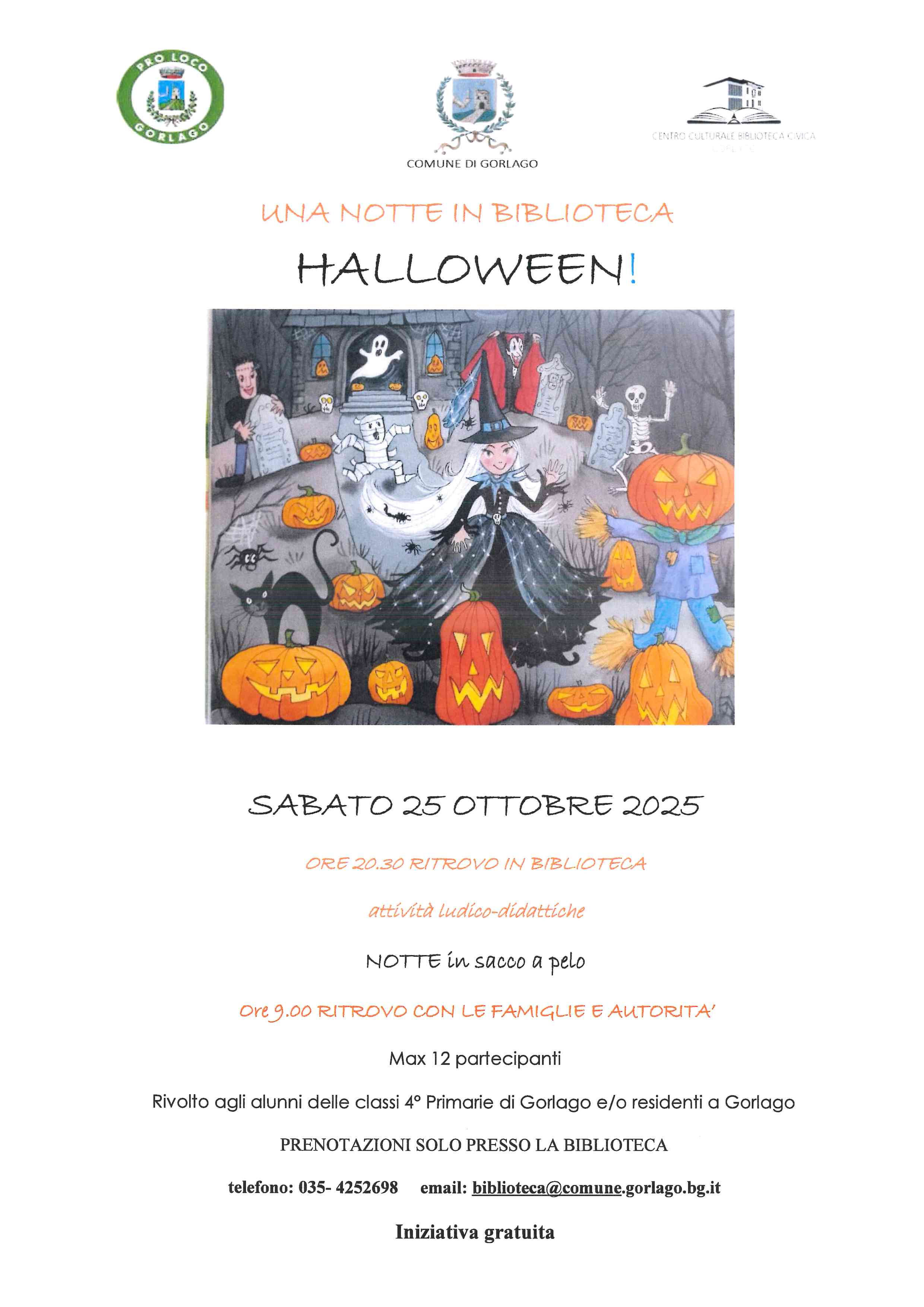 Una serata magica attende i giovani lettori della Biblioteca di Gorlago con «Una notte in biblioteca – Halloween!”, un’iniziativa speciale dedicata ai bambini delle classi quarte della scuola primaria di Gorlago e ai residenti del paese.