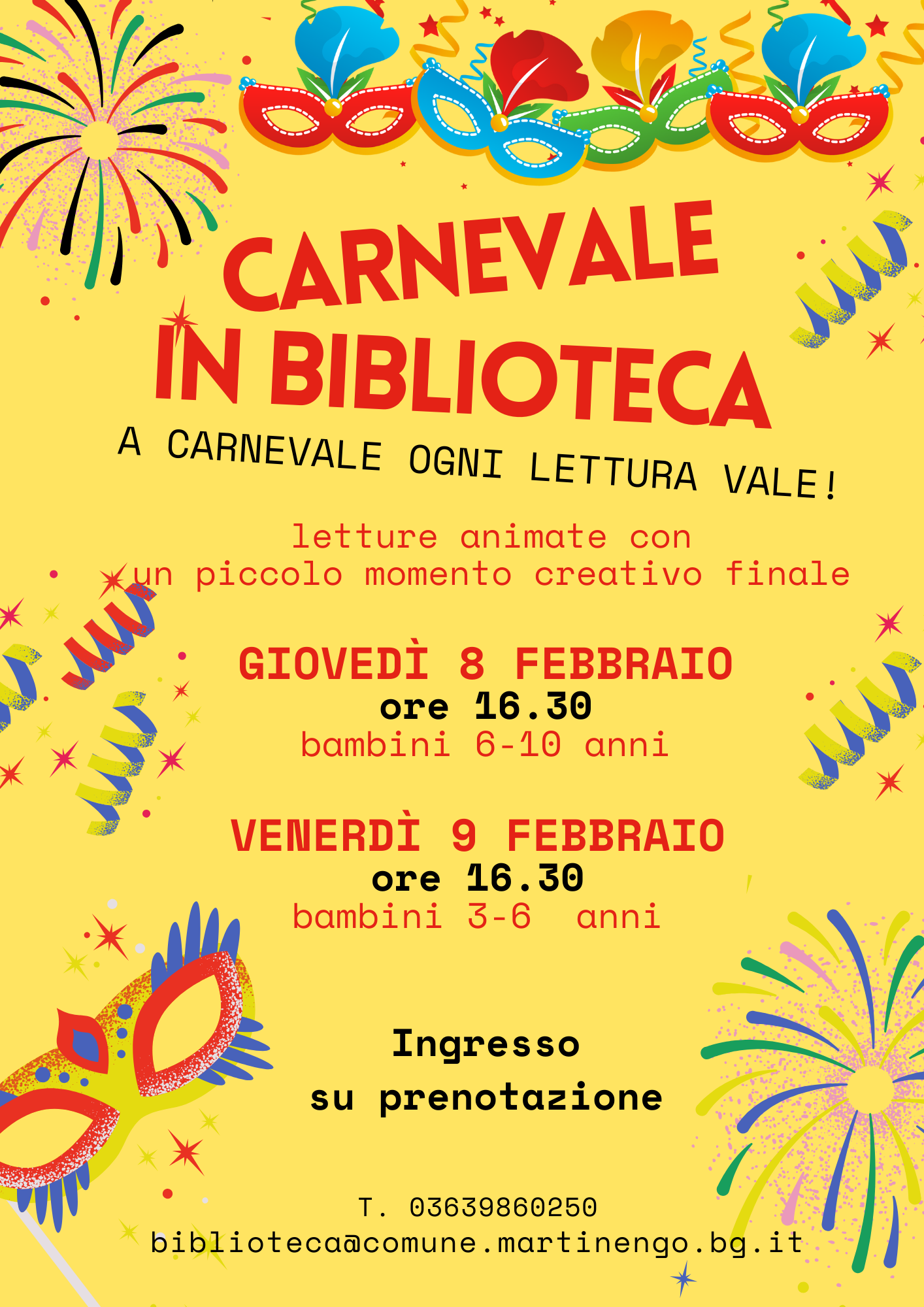 In occasione del Carnevale sono previste in biblioteca letture animate con un piccolo momento creativo finale!