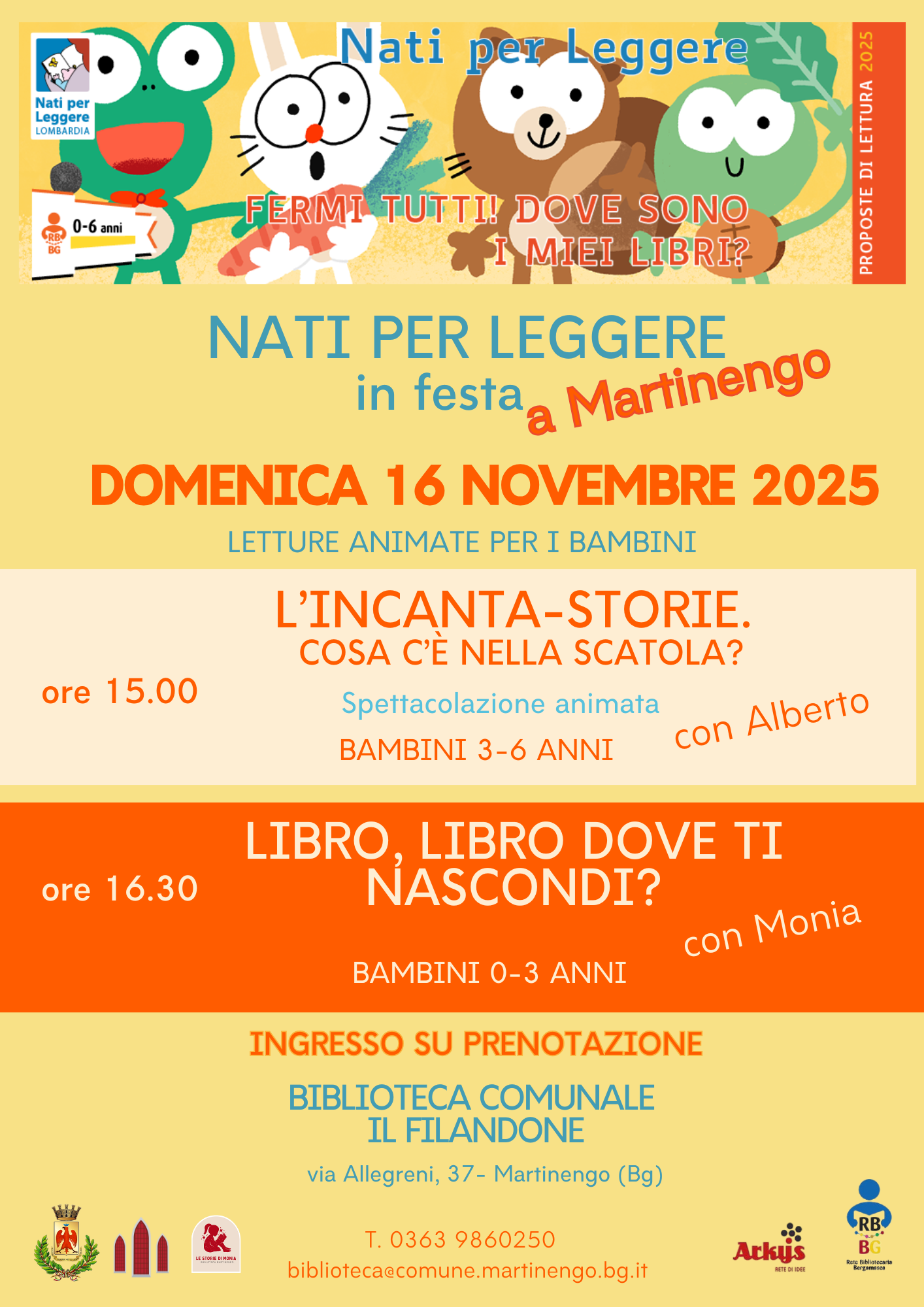 Unisciti a noi a Martinengo per una domenica magica dedicata alla lettura, con l'iniziativa «Nati per Leggere in festa!»
