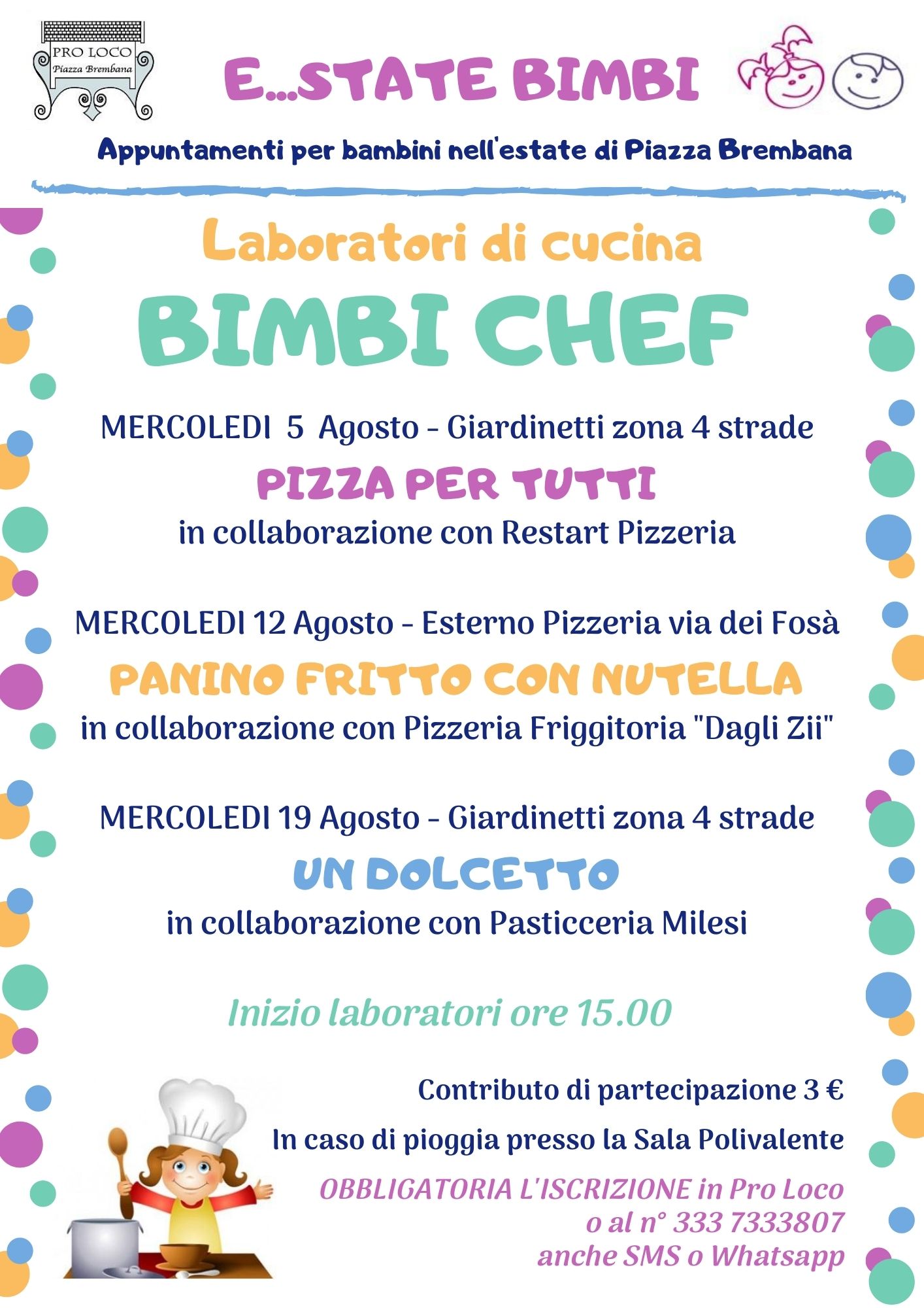 Nell'ambito dell'iniziativa "E... state bimbi", la Pro Loco di Piazza Brembana organizza il laboratorio di cucina Bimbi Chef.
