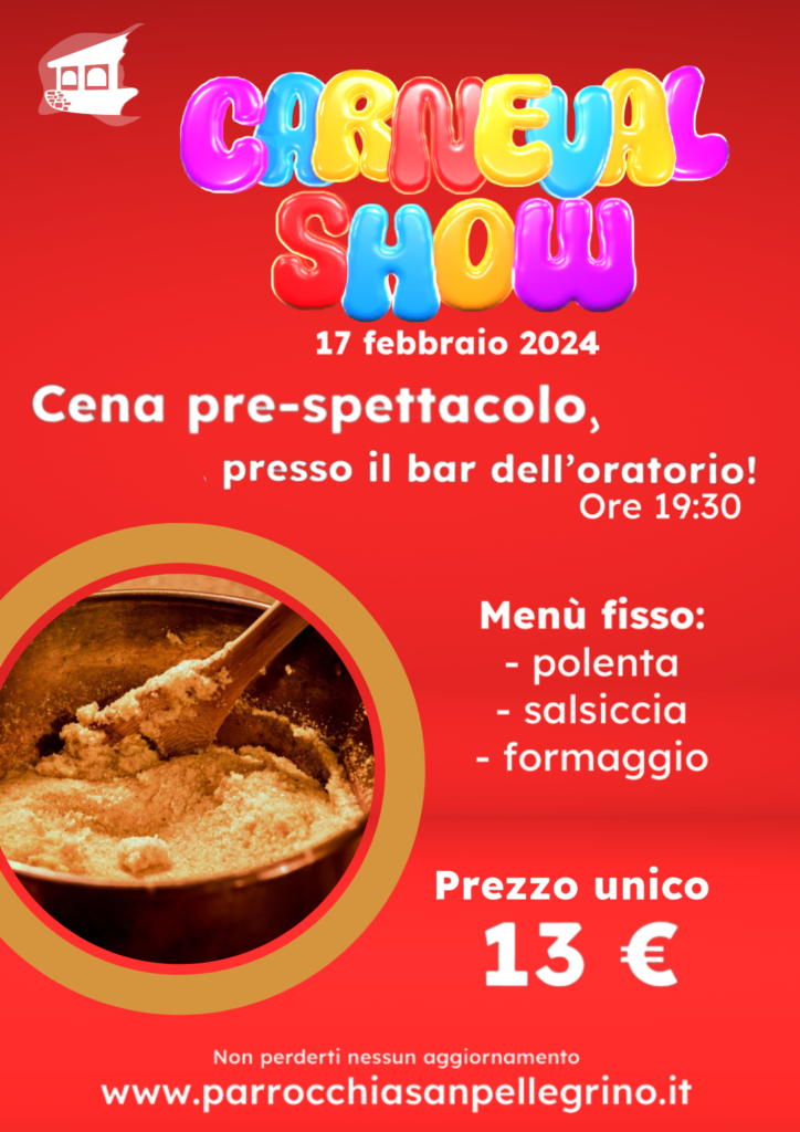 Prima del Carneval Show, l'Oratorio di San Pellegrino Terme organizza una cena presso il bar dell'oratorio.