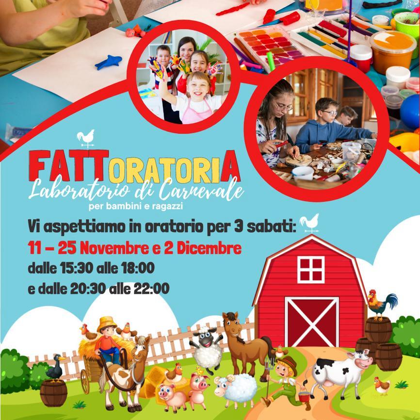L'Oratorio di Sarnico organizza il primo appuntamento di "FATToratoriA", un laboratorio di Carnevale per bambini e ragazzi in cui verrร preparata la scenografia di Carnevale per allestire l'Oratorio.