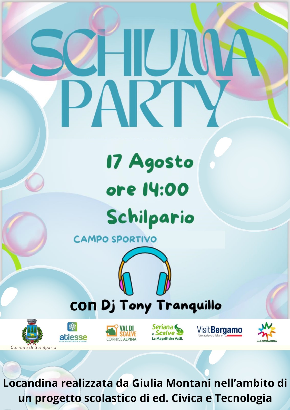 Arriva a festa estiva più spumeggiante della Val di Scalve! Sabato 17 agosto a Schilpario ritorna il divertentissimo Schiuma Party.