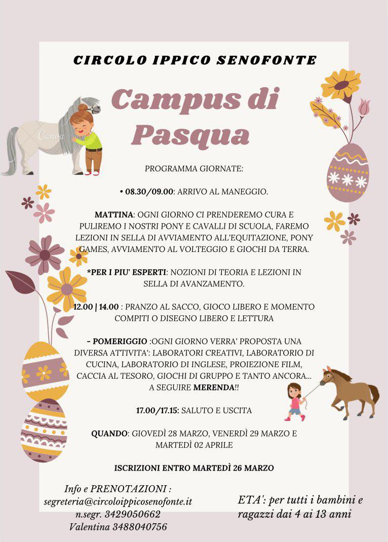 Il circolo ippico Senofonte invita i bambini a passare una giornata immersi nella natura del maneggio. Insieme si svolgeranno diverse attivitร tra cui le lezioni in sella di avviamento, pulizia dei pony e altre attivitร creative...