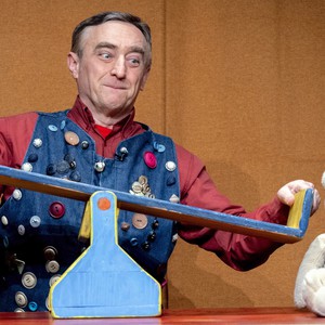 Tiziano Manzini di Pandemonum Teatro in una narrazione con animazione di peluches.