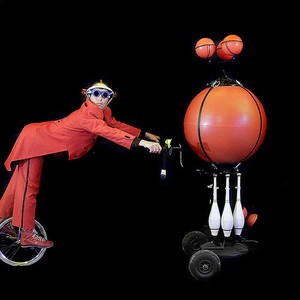 In conclusione Stefano Locati con tetaro di strada e di piazza «Rosso a spasso». Una macchina scenica su ruote trasformabile che porta in giro gli attrezzi del mestiere: clave, torce infuocate, gag comiche, magie. Diventando ora palco, ora mezzo di trasporto dalle mille risorse, ora carretto delle caramelle. Il tutto spinto da una bicicletta con una ruota sola e, come una scatola delle sorprese, da ogni sportello spuntano fuori numeri di giocoleria, equilibrismo, portando nelle strade e sui palchi l’antica arte del saltimbanco attraverso il coinvolgimento del pubblico.