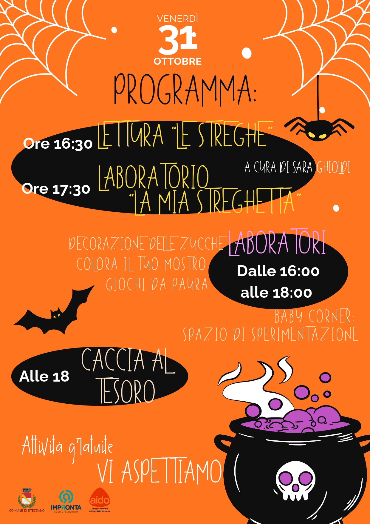 La magia di Halloween arriva a Stezzao con un ricco programma di eventi pensati per tutta la famiglia. Tra zucche intagliate, cacce al tesoro e mostri colorati, i più piccoli potranno vivere un pomeriggio di divertimento e fantasia in un’atmosfera da “dolcetto o scherzetto”.