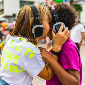 Silent play, gioco teatrale. I piccoli spettatori e le piccole spettatrici indossano le radioguide ed entrano in un territorio incantato fatto solo di suoni. Le istruzioni ripropongono in cuffia un viaggio lungo l’antico cammino della fiaba di magia.