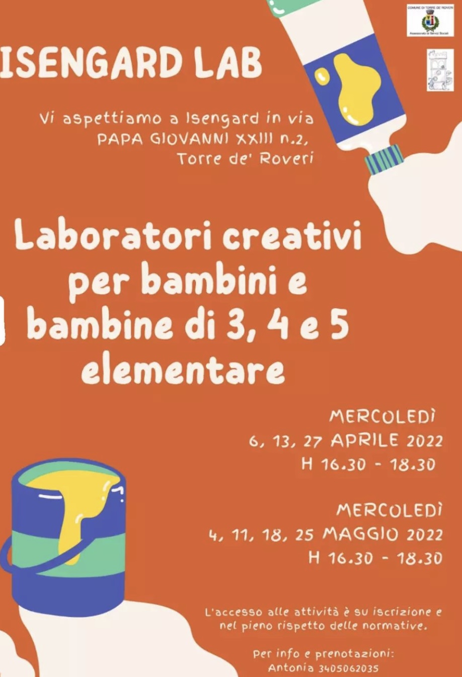 Spazio giovani "ISENGARD LAB" vi aspettano con dei laboratori creativi per bambini e bambine di 3, 4 e 5 elementare