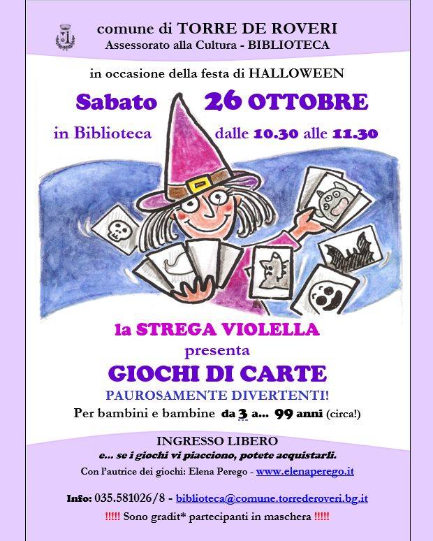Il comune di Torre de' Roveri insieme all’assessorato alla Cultura e alla biblioteca civica presenta, in occasione della festa di Halloween: la Strega Violella - giochi di carte paurosamente diverenti!