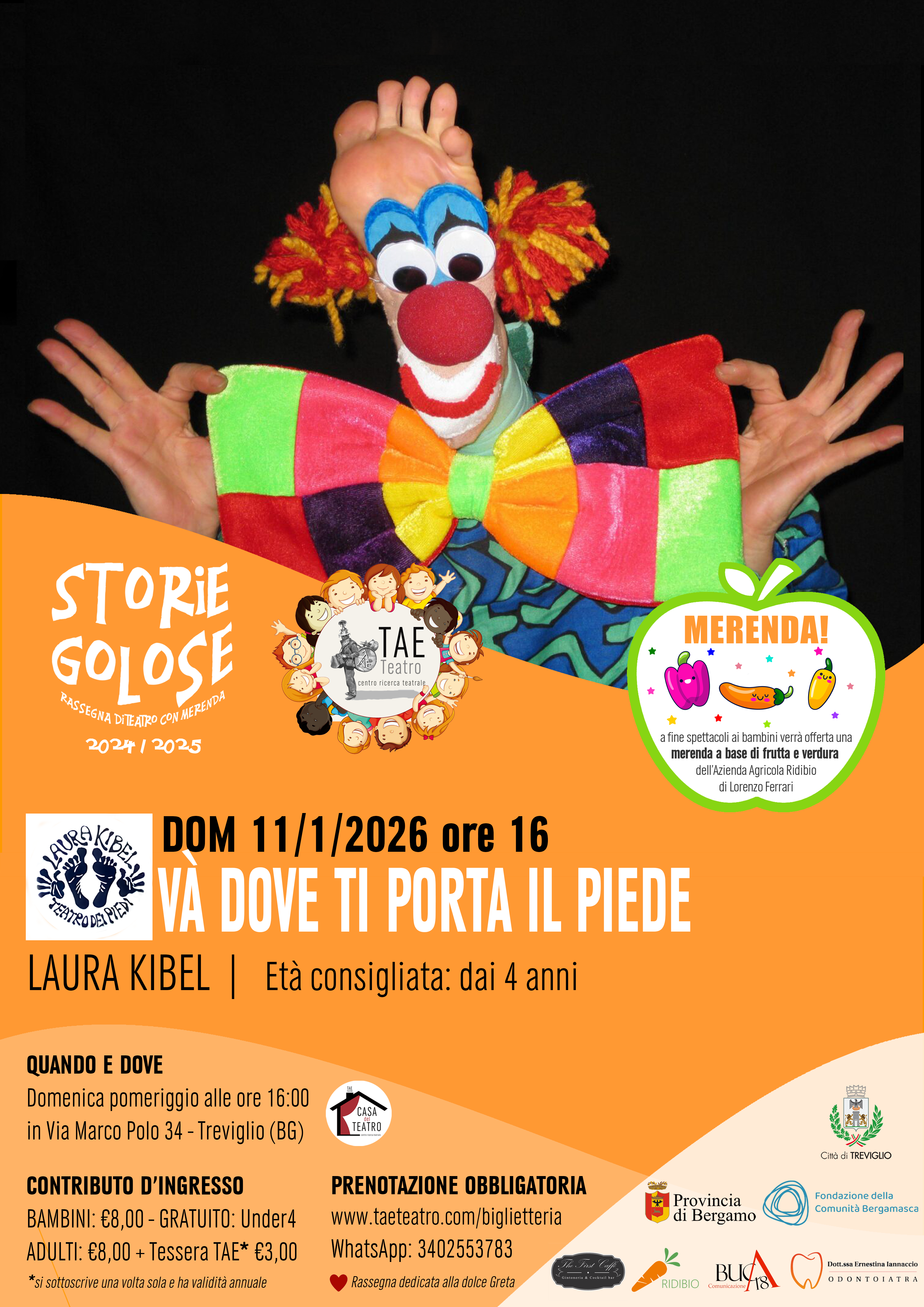 Per la rassegna di teatro per bambini «Storie Golose» sul palco uno spettacolo di teatro fatto con i piedi! In questa straordinaria esperienza di teatro visuale senza parole, i piccoli spettatori vengono trasportati in un’atmosfera unica, comica e poetica.