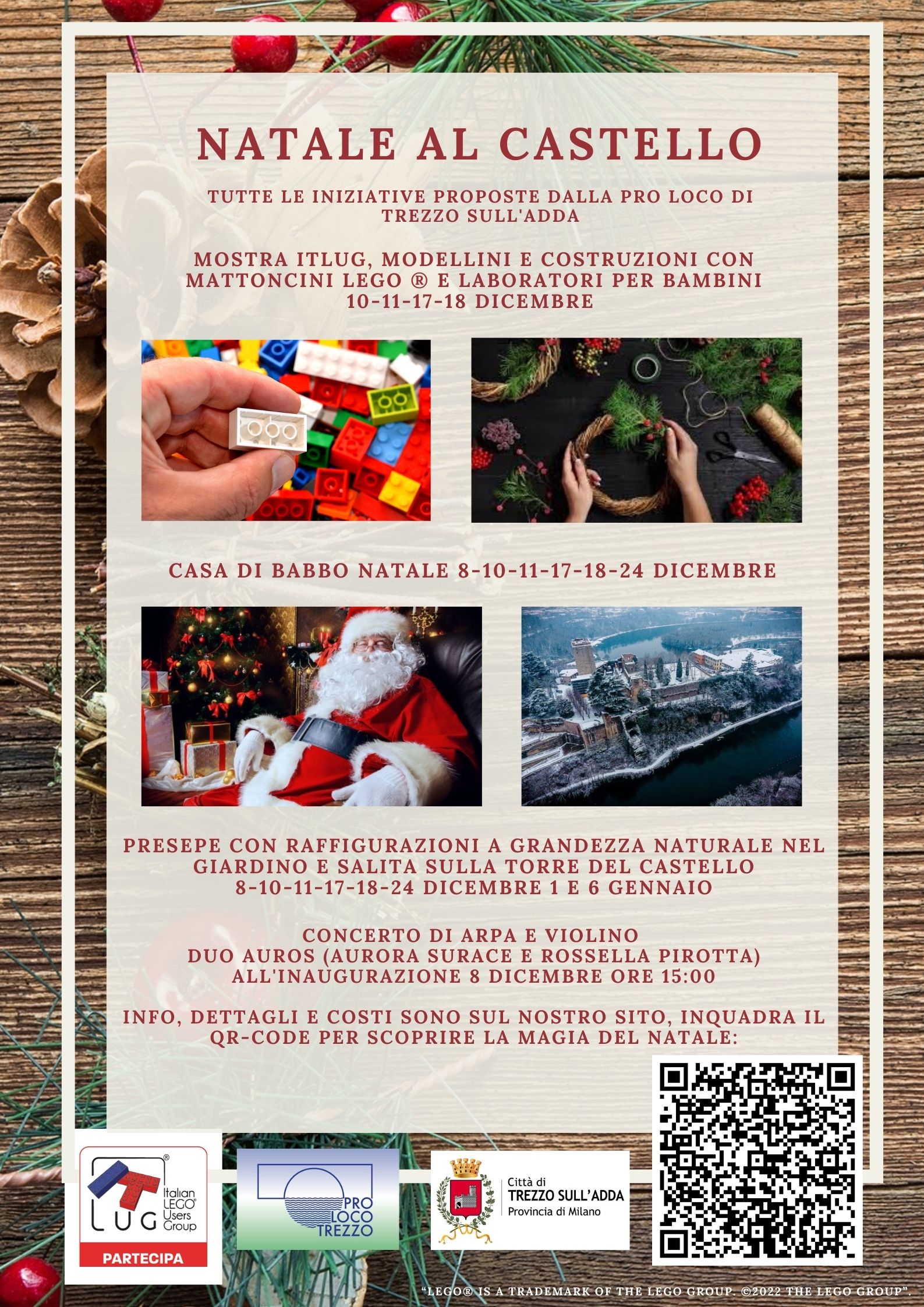 La magia del Natale torna al Castello di Trezzo, tra laboratori, mostra LEGO, Casa di Babbo Natale, presepe e giardino natalizio.