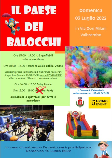 Il Comune di Valbrembo in collaborazione con Urban Eventi organizzano IL PAESE DEI BALOCCHI