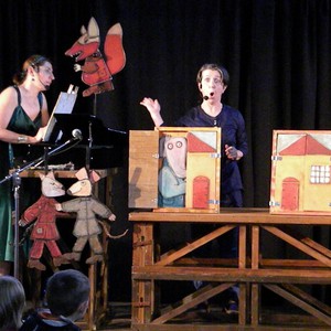 Accolgono il pubblico due attrici, un piccolo pianoforte nero, ed un coloratissimo leggio, presto si comincerà a suonare, a cantare a raccontare storie delicate e buffe. Illustrano le storie otto sagome coloratissime degli animali che prendono vita nelle mani del narratore e dei bambini invitati ad intervenire nel gioco del teatro, mentre le melodie coinvolgono gli spettatori a partecipare attraverso il canto e la musica, eseguita con un incantevole toy-piano, un piccolo pianoforte a coda. Lo spettacolo offre al pubblico dell’infanzia la sua ricerca teatrale dove gesto parola s’intreccia con il canto la musica dal vivo e l’animazione di splendidi sagome di legno e dipinte a mano come nelle botteghe di tradizione.