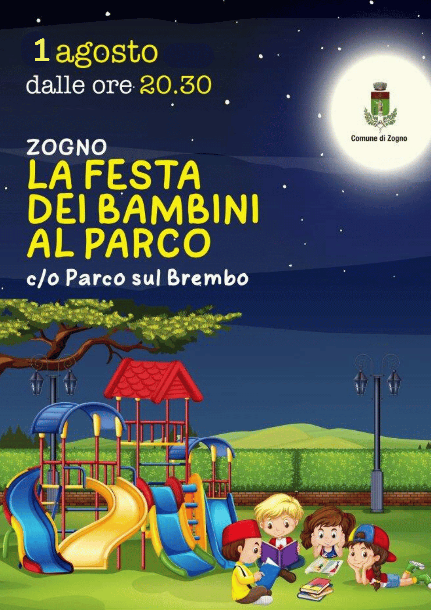 La Notte dei Bambini al Parco nel parco comunale per bambini più storico di Zogno, avrà luogo dalle 20,30 alle 23. In programma vi sono diverse attività e spettacoli ricreativi. La manifestazione rappresenta un modo per mettere al centro della nostra cittadina il bambino, dedicando ad esso una serata ricca di divertimento con tante attività per farlo diventare protagonista.