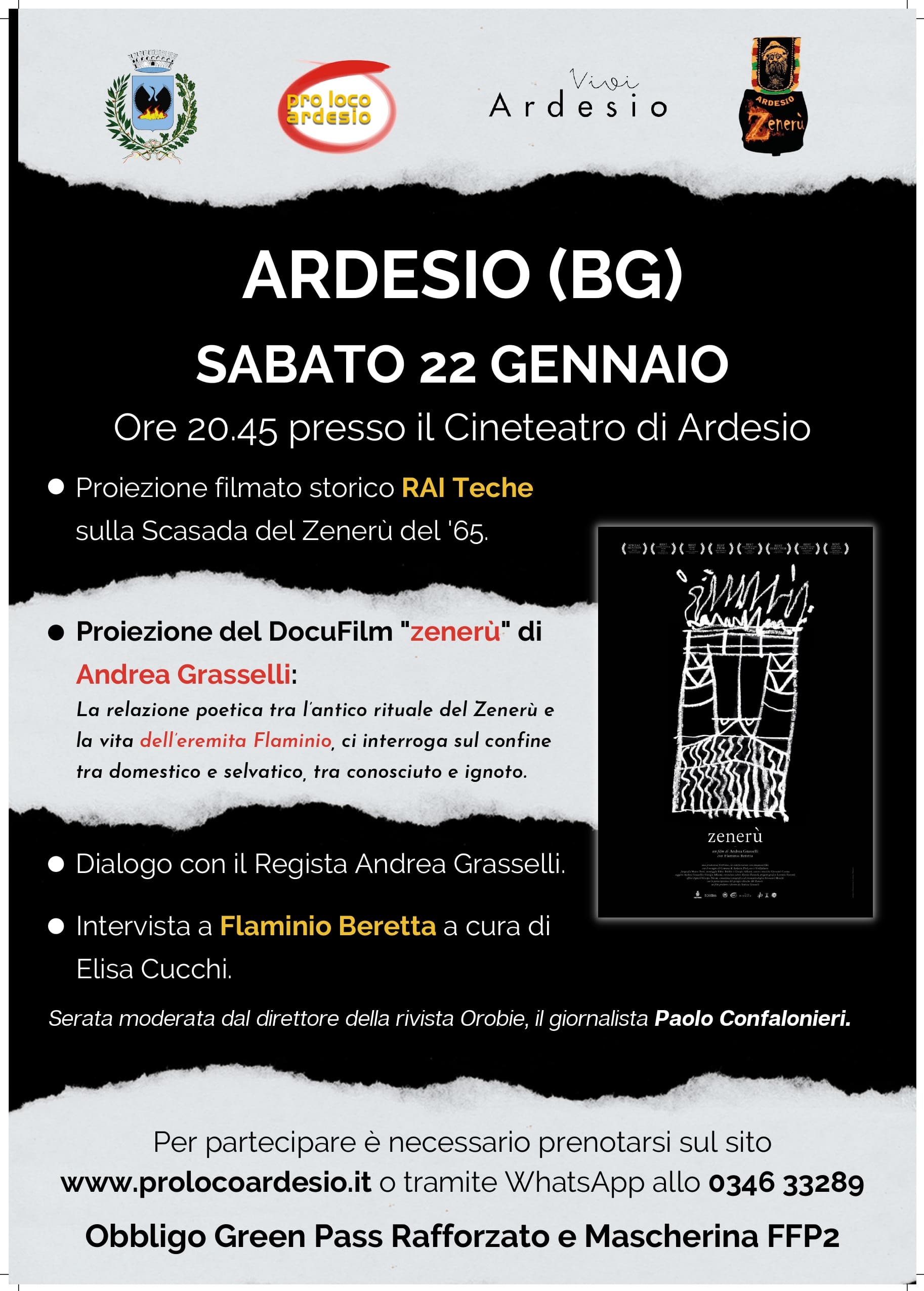 “Zenerù” è il nuovo film del regista Andrea Grasselli che racconta la relazione poetica tra l’antico rituale della Scasada del Zenerù di Ardesio e la vita dell’eremita Flaminio Beretta presentato in anteprima nazionale il 29 maggio al “Film Festival del Garda” e al “Dolomiti Film Festival”.