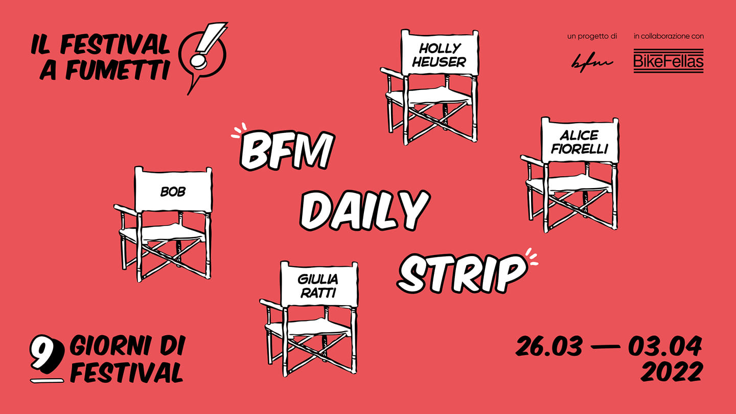 Grazie alla preziosa collaborazione dell’amico Stefano Togni aka SerT, i quattro giovani illustratori emergenti sono pronti a raccontarci un dietro le quinte di BFM 40 inedito, curioso e imperdibile attraverso le loro immancabili strisce giornaliere.