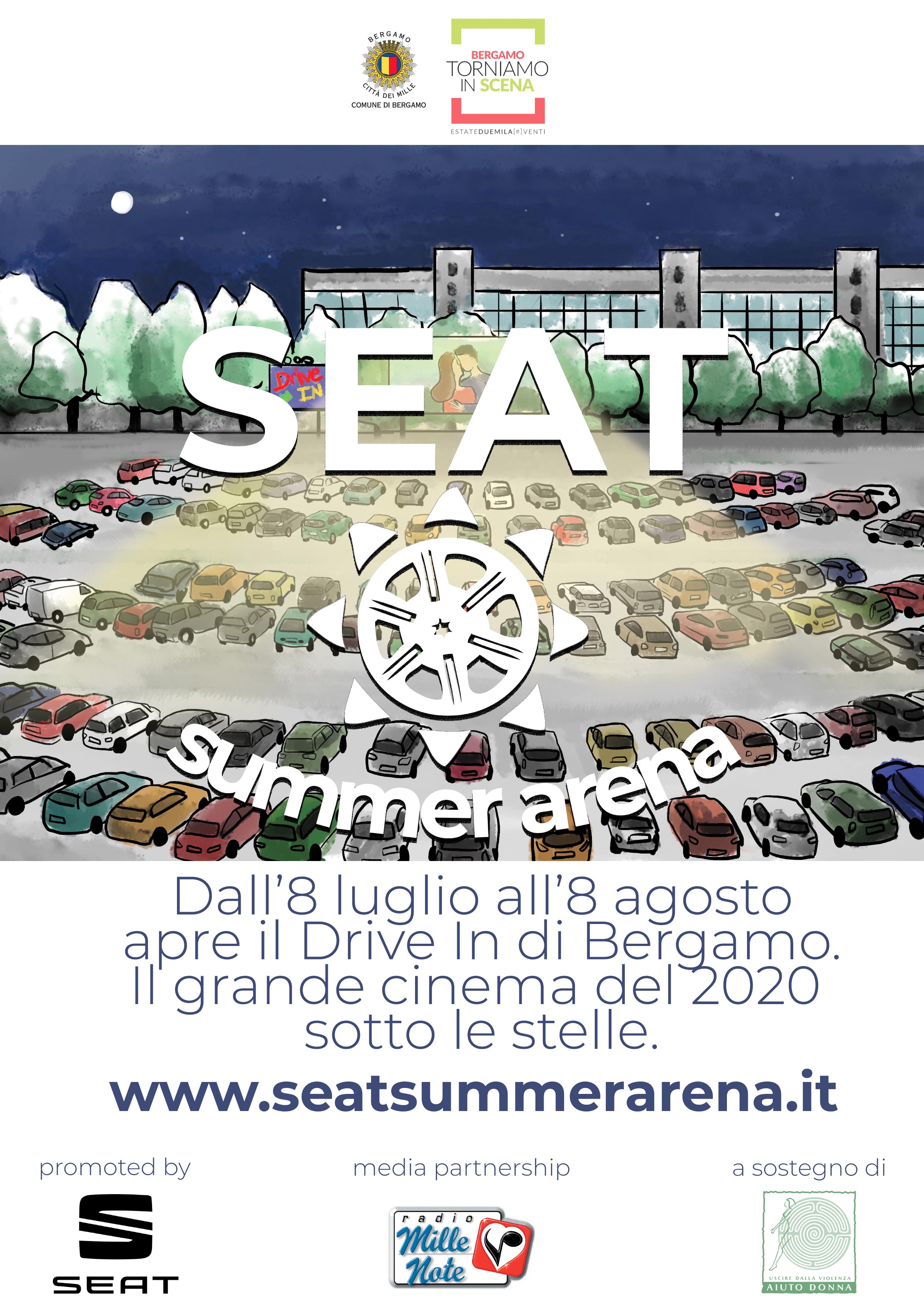 Comune di Bergamo insieme a SEAT, attraverso un progetto curato dalla società SBAM, si mette al servizio della ripartenza del territorio e propone Seat Summer Arena! Dall'8 luglio all'8 agosto 20 serate di proiezioni presso il Piazzale della Celadina, adattato a Cinema Drive In.