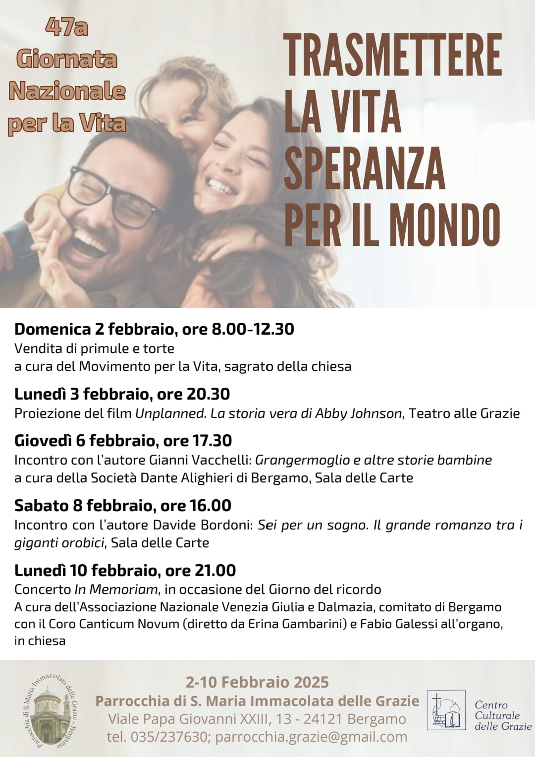 In occasione della 47esima Giornata Nazionale per la Vita la Parrocchia di Santa Maria alle Grazie organizza una serie di iniziative: incontro con l'autore Davide Bordoni che presenterà il suo libro "Sei per un sogno".