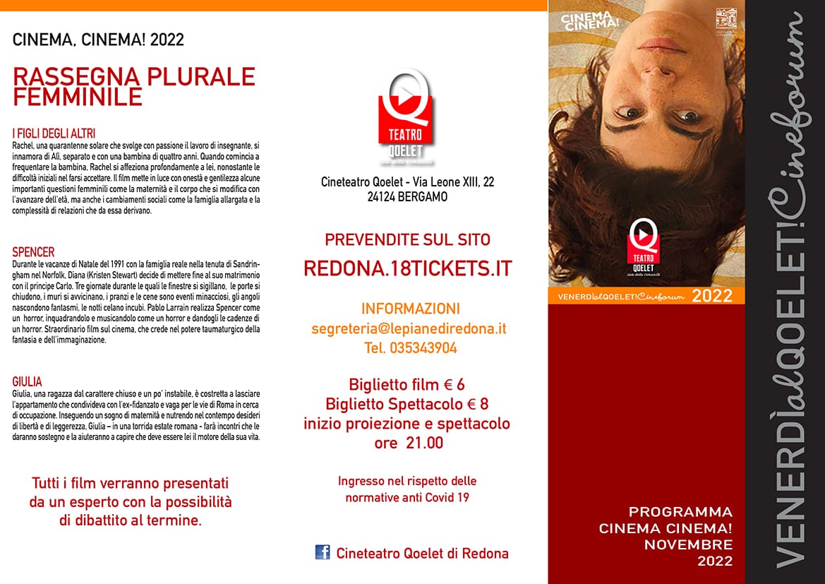 In occasione della "Giornata internazionale per l'eliminazione della violenza contro le donne" che ricorre il 25 novembre, il Qoelet di Redona propone una rassegna completamente dedicata alla figura della donna: "Plurale femminile".