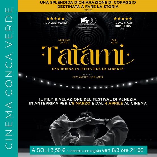 Al Cinema Teatro Conca Verde viene proiettato il film "Tatami" di Zahra Amir Ebrahimi e Guy Nattiv. I registi introdurranno la proiezioni in diretta streaming in occasione della Festa della Donna.