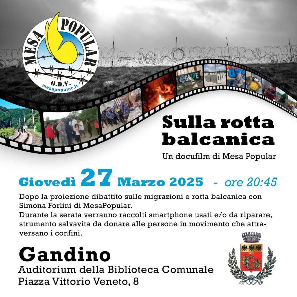 Giovedì 2, presso l’Auditorium della Biblioteca Comunale di Gandino, proiezione del docufilm Sulla rotta balcanica a cura dell’associazione Mesa Popular.