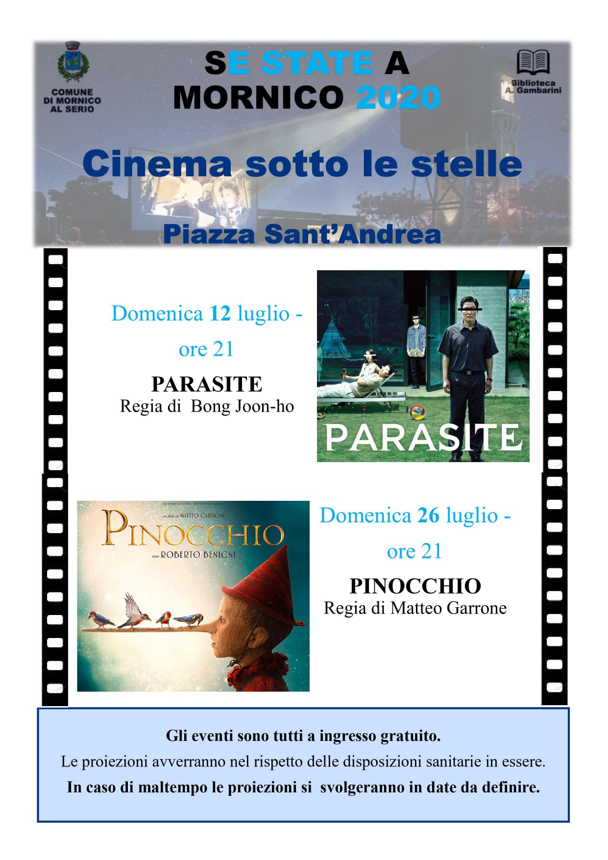La proiezione avverà nella piazza del paese, nel rispetto delle prescrizioni vigenti in materia sanitaria.