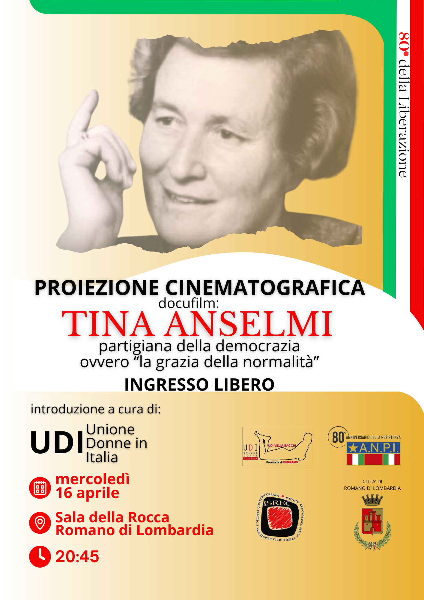 Proiezione del docufilm RAI sulla figura di Tina Anselmi: la scelta partigiana in coerenza alla sua fede cattolica, la sindacalista, donna delle istituzioni democratiche, prima donna ministro della Repubblica, gigante della storia recente del nostro Paese. Ingresso Libero.